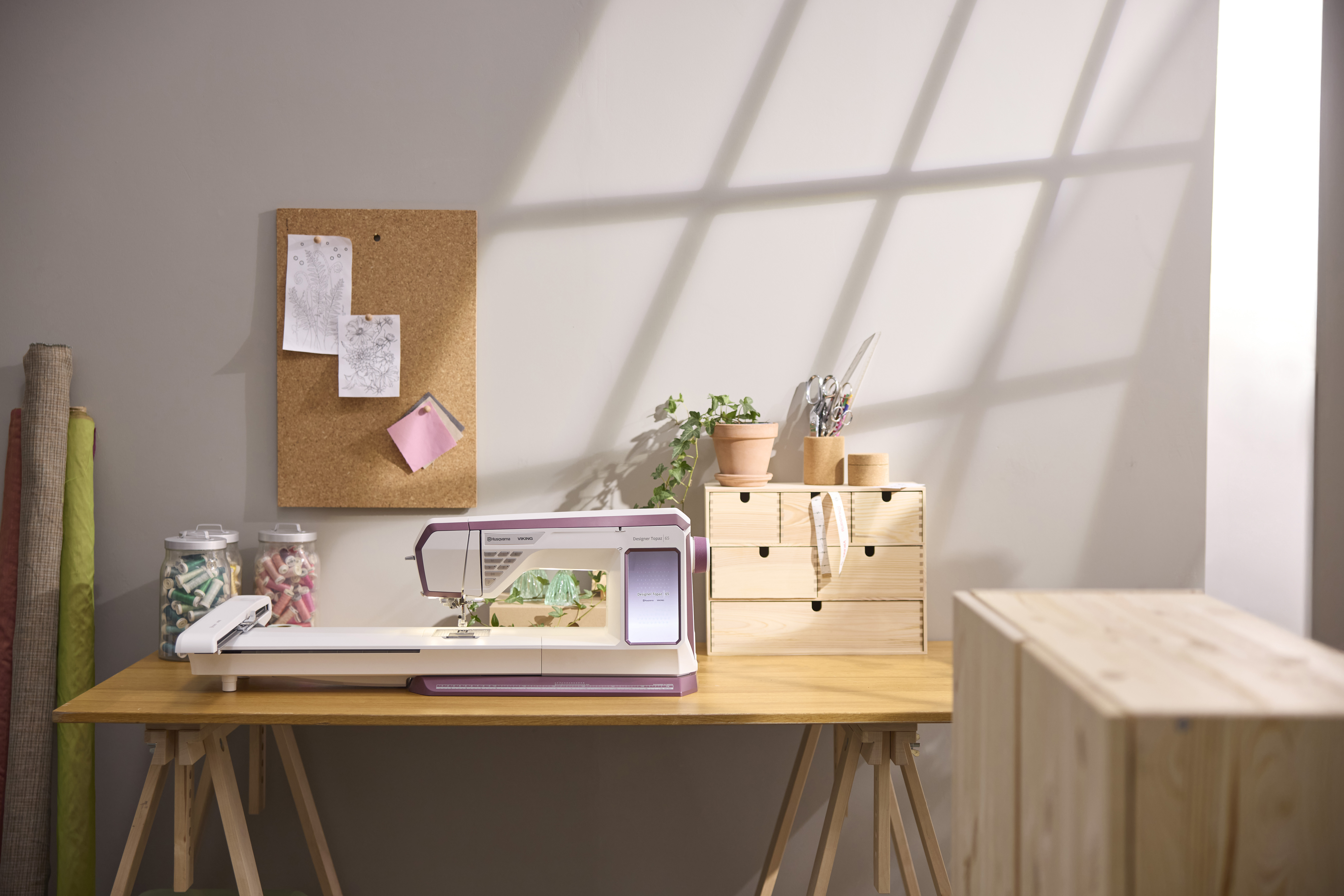 Grow as a sewist. And into embroidery.The HUSQVARNA® VIKING® DESIGNER TOPAZ™ 65, sewing and embroidery machine. For those who want it all, adds powerful embroidery capabilities, large embroidery area.